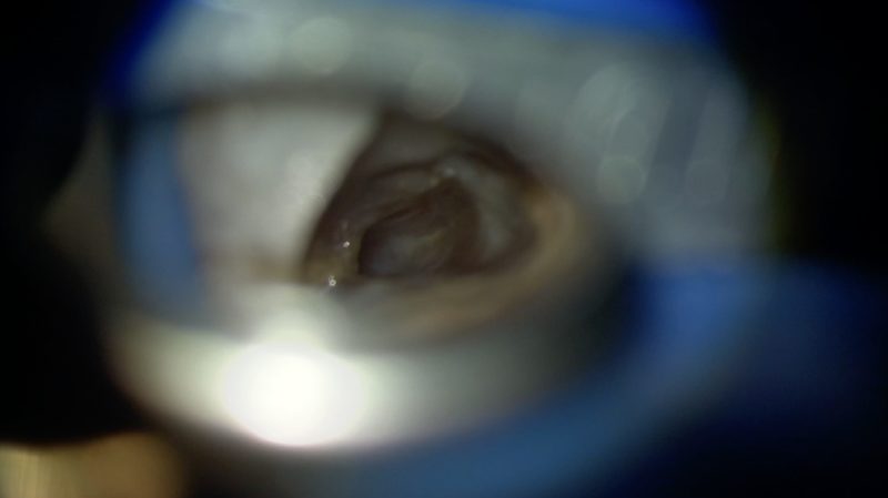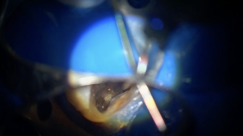 頬側から、舌側からと根管内をきれいにしていたら、簡単に破折ファイルが出てきました。